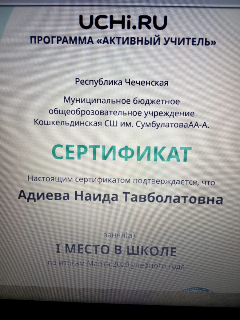 МБОУ "Кошкельдинская СШ имени Сумбулатова А. А-А." Гудермесского муниципального района ЧР