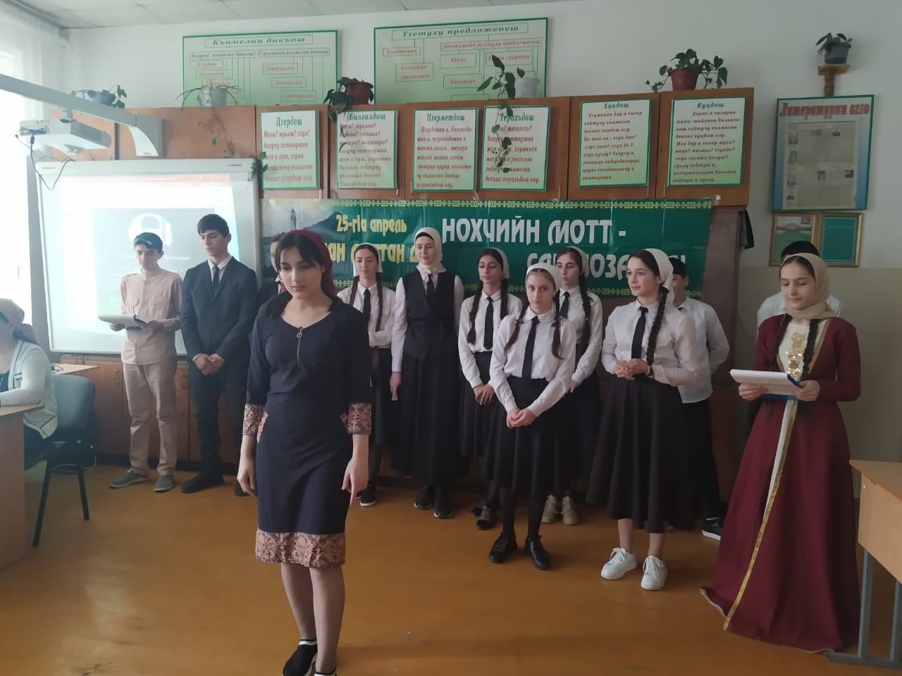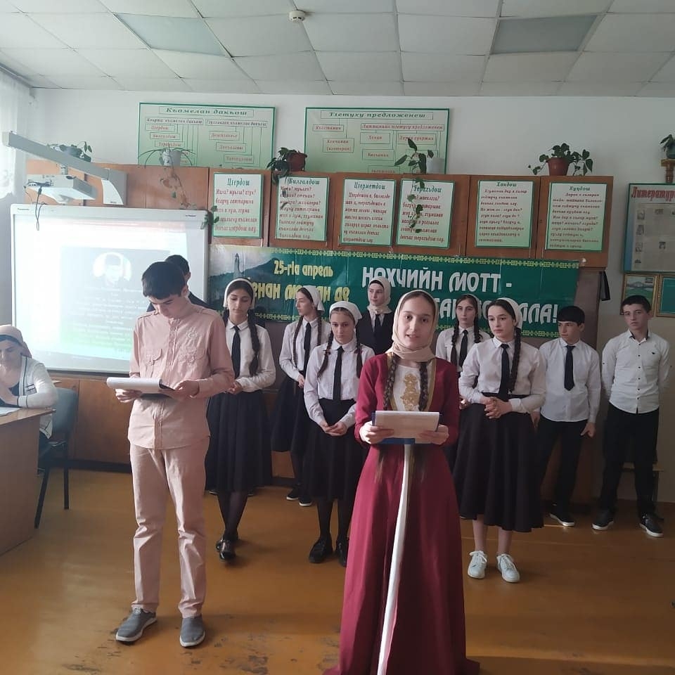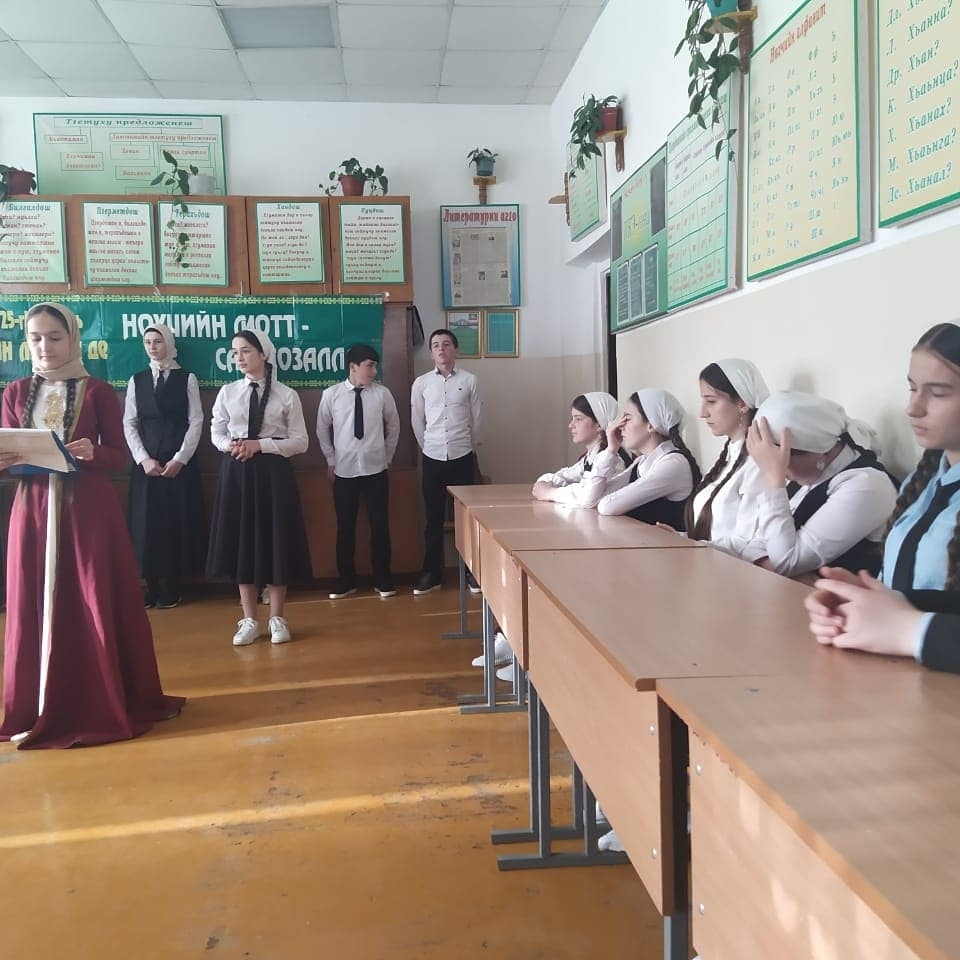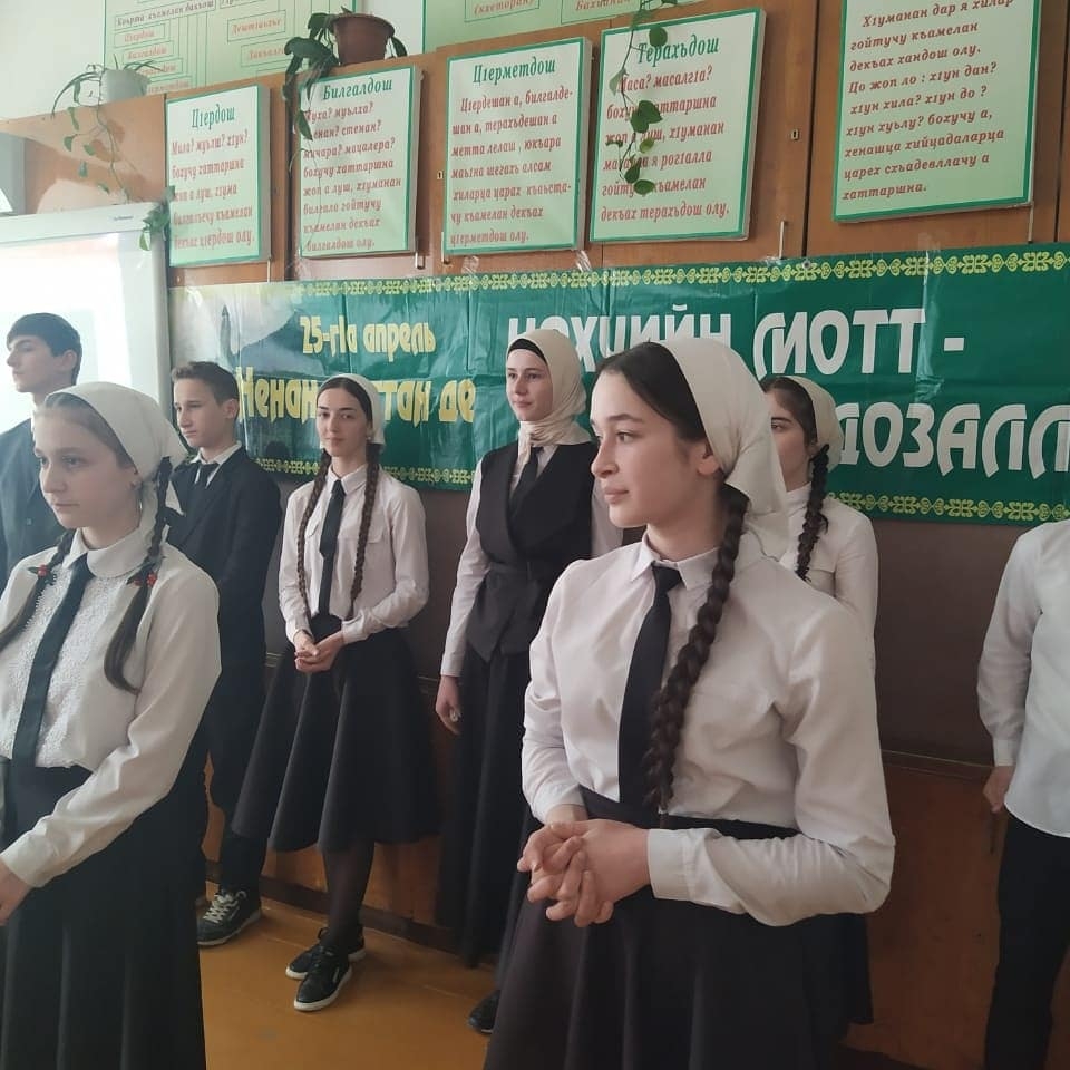 24 апреля 2021 года в МБОУ "Кошкельдинская СШ им. Сумбулатова А.А-А." учащимися 8-х классов проведено внеклассное мероприятие "Нохчийн мотт- къоман юьхь, халкъан орам", посвященное Дню Чеченского языка (учитель Хажиева М.И.)