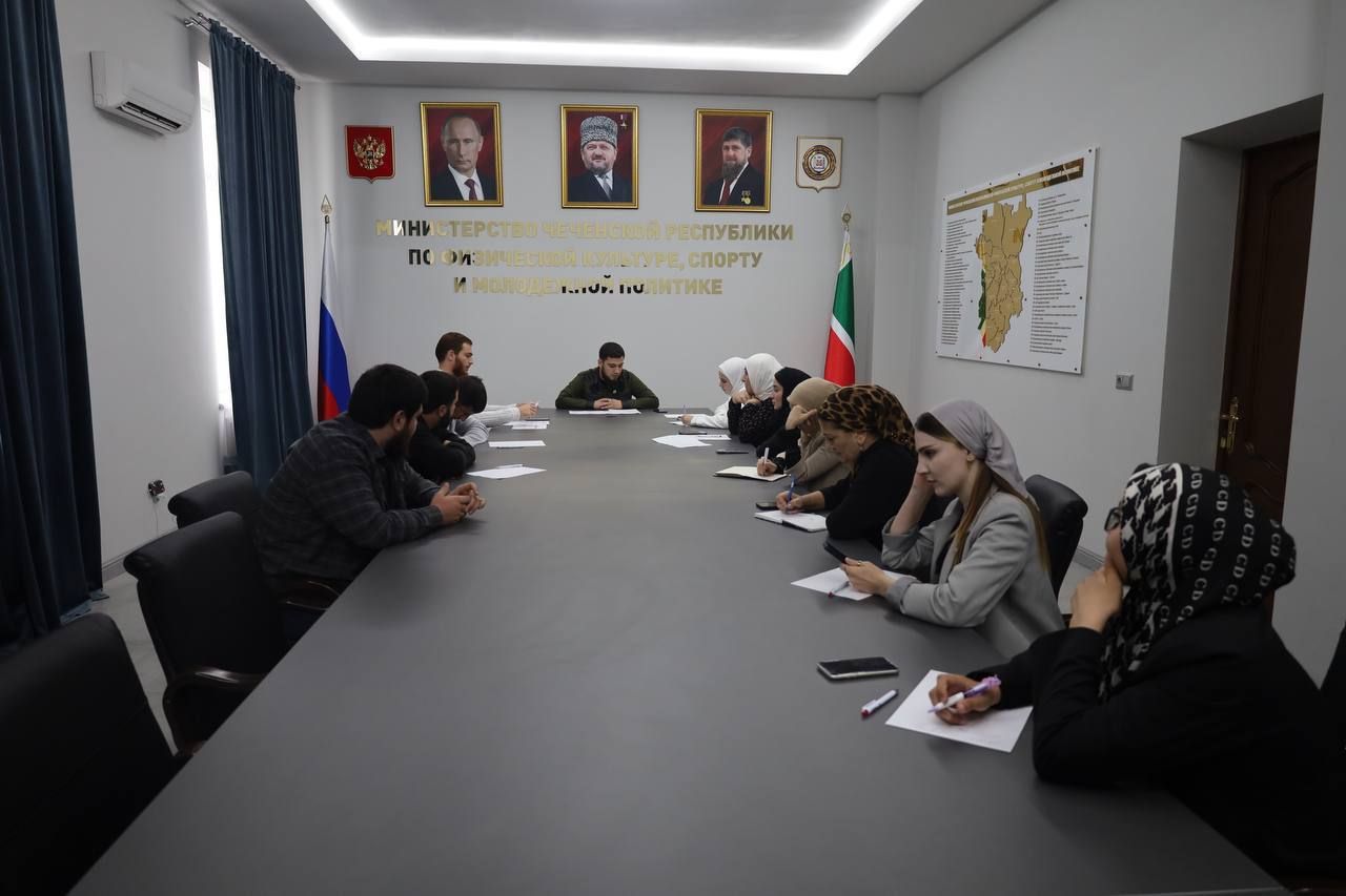 В МИНИСТЕРСТВЕ ЧЕЧЕНСКОЙ РЕСПУБЛИКИПО ФИЗИЧЕСКОЙ КУЛЬТУРЕ СПОРТУ И МОЛОДЕЖНОЙ ПОЛИТИКЕ состоялась встреча Председателя ЧРОО ЕДЮО «Юные Кадыровцы» Ю.Н. Бетмерзаева с кураторами районов ЧР , где обсудили вопросы по поводу проведения районного этапа , а так же планирование проведения регионального этапа «II-Фестиваль школьных команд КВН Чеченской Республики»!